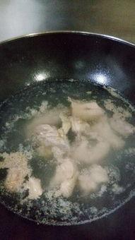 3. 锅中加水,放入姜片、葱段,将鸡肉或猪肉焯水去腥。